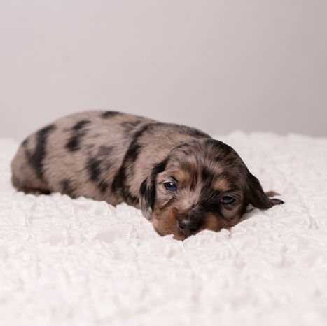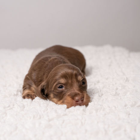 Our puppies are born and raised in our living room- no kennels. Our dachshunds are our family pets and are indoor dogs. The puppies get constant supervision and are cuddled throughout the day. They are very well socialized to the noises and activities of a family with children of all ages.